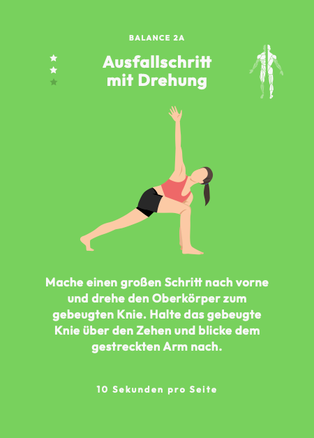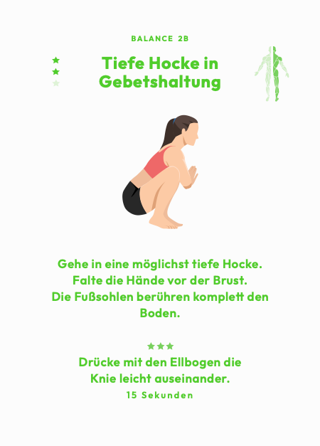 Du trainierst jede gezogene Karte beidseitig: Vorderseite = Übung, Rückseite = Ergänzungsübung. So entsteht automatisch ein ausgewogenes Training und du vermeidest einseitige Belastung.